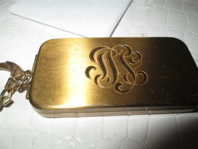 VTG INITIAL BRUSHED GOLDTONE RECTANGLE W FELT LINING MINT GORGEOUS PC