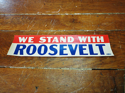 Title (ebay affiliate link): FRANKLIN D ROOSEVELT-"WE STAND WITH ROOSEVELT"-GUMMED FRONT WINDOW STICKER-1936