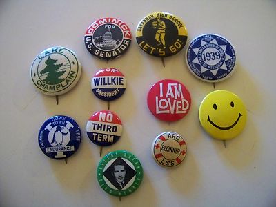 Title (ebay affiliate link): Lot Vintage pins/buttons Swimming Political Love Button Arc Pin Button & More