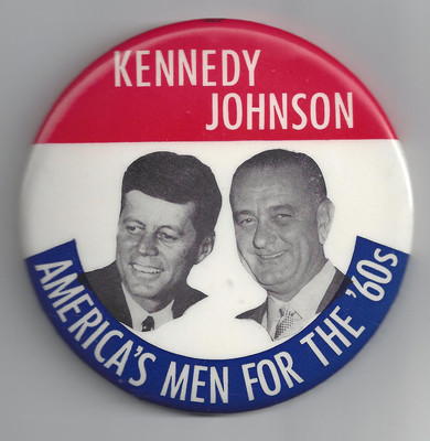 Title (ebay affiliate link): 1960 JFK KENNEDY & LBJ JOHNSON "AMERICA'S MEN FOR THE '60s" JUGATE PIC BUTTON