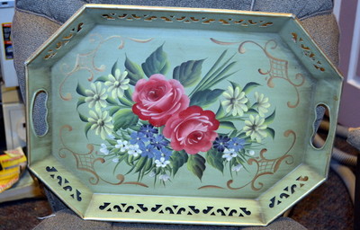 Title (ebay affiliate link): Antique Ornate Vintage Hand-Painted Red Rose Tole Tray