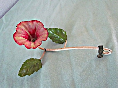 VINTAGE ANTIQUE ITALIAN TOLE RED MORNING GLORY CANDLE SNUFFER SHABBY CHIC FLORAL