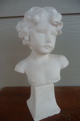 Antique c. 1900 Victorian Carved Alabaster Bust of Semi Nude Child