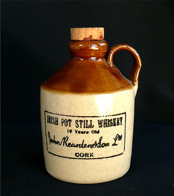Miniature Two-Tone Whiskey Jug Crock, Adv. Irish Pot Still Whiskey, Cork