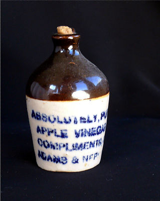 Miniature Two-Tone Whiskey Jug Crock, Adv.Apple Vinegar, Adams & ?