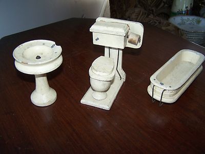Title (ebay affiliate link): Antique Vintage Doll Furniture circa 1940 Bathroom Toilet Bathtub Decorator Item