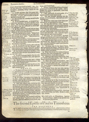 1607 Geneva Quarto Black Letter Bible Leaf/1ST TIMOTHY 3-6!