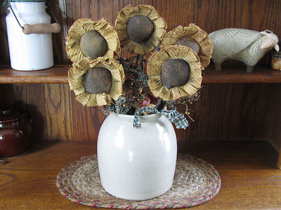 Title (ebay affiliate link): 5 QUILTED GOLD HANDMADE GRUNGED PRIMITIVE SUNFLOWER POKES FOR ANTIQUE CROCKS
