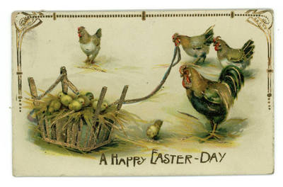 Title (ebay affiliate link): VINTAGE POSTCARD EASTER Rooster Chicken Chicks Gel Coated Bright Gold Trim