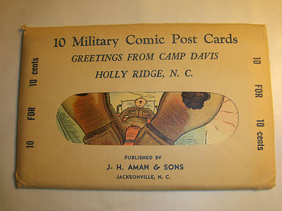 LOT OF 10 CAMP DAVIS NC MILITARY COMIC LINEN TICNOR VINTAGE POSTCARDS