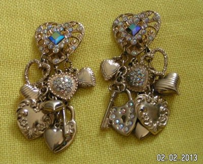 Title (ebay affiliate link): Vintage Signed KIRKS KIRK'S FOLLY Puffy Heart Padlock Charm Chandelier Earrings