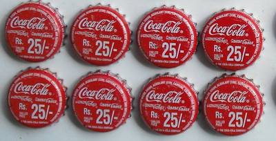 8 Coca Cola Bottle Caps from Sri Lanka (Rs 25 on them)