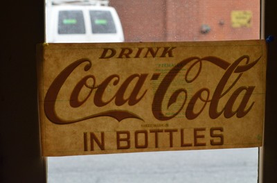Original large "Drink Coca Cola in Bottles" water transfer decal