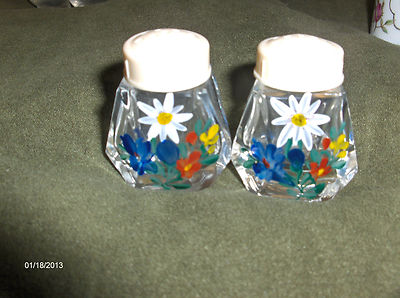Title (ebay affiliate link): VINTAGE NICE SMALL GLASS W/PAINTED FLOWERS SALT AND PEPPER SHAKERS