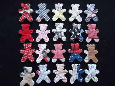 Title (ebay affiliate link): 20 PRIMITIVE ANTIQUE FOLK ART CUTTER QUILT MINI TEDDY BEARS- CUTE!