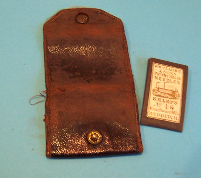 Title (ebay affiliate link): Shaker Leather Covered Sewing Kit with Clarke needles snaps closed