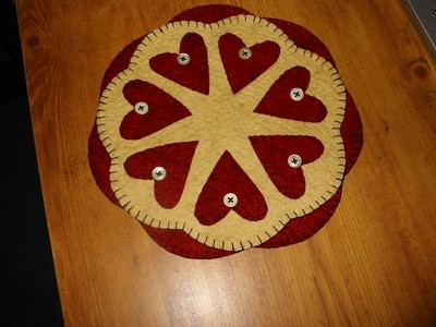 Title (ebay affiliate link): Primitive Candle Mat - Woolfelt Penny Rug- Hearts 9"