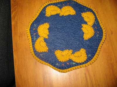 Title (ebay affiliate link): Primitive Candle Mat - Woolfelt Penny Rug- Chicks 9"