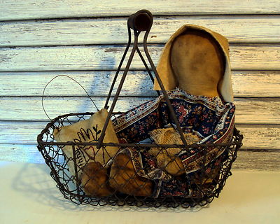 Title (ebay affiliate link): PRIMITIVE FOLK ART HANDMADE HANDCRAFTED PRAIRIE ORNIE DOLL CHICKEN WIRE BASKET