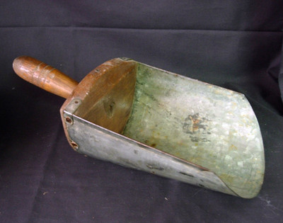 Title (ebay affiliate link): Vintage Wooden Handle Tin Scoop Country Store Grain Scoop Feed Scoop 12" Long