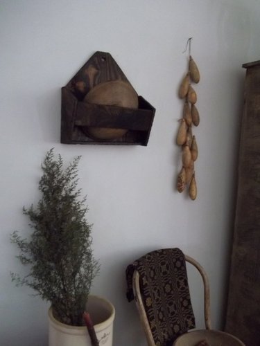 Primitive early styled wooden wall box for wooden bowl