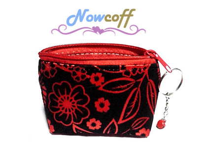Title (ebay affiliate link): VINTAGE HOT RED FLOWER WOMAN COIN PURSE WALLET with CUTE BELL KEY CHAIN