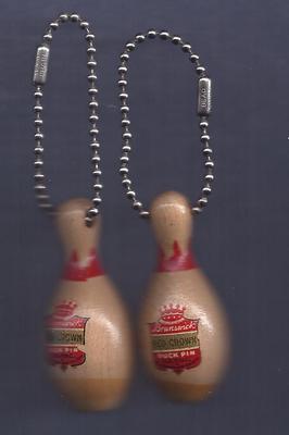 Title (ebay affiliate link): Two Lot Vintage Mini Miniature Brunswick Key Chain Size Bowling Pins Fun Prize