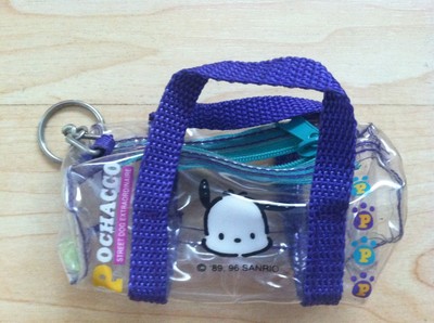 Title (ebay affiliate link): Vintage 1996 Sanrio Pochacco Vinyl Zippered Duffle Coin Purse Keychain