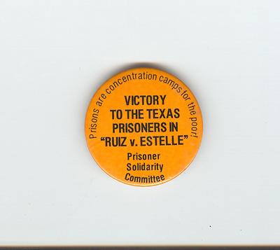 Title (ebay affiliate link): Ruiz v. Estelle Victory to Texas Prisoners Solidarity Committee Political Button