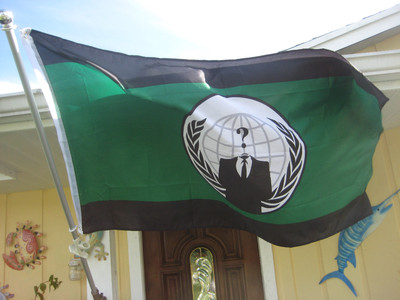 Title (ebay affiliate link): Anonymous 5 foot Flag Banner ANON 4Chan 5'x3' Reddit Occupy 99%