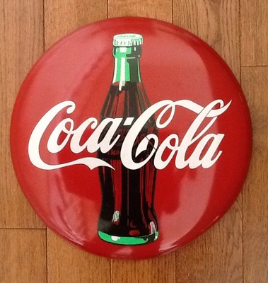 Title (ebay affiliate link): Coca-Cola 12" Metal Button Sign Advertizing 1990