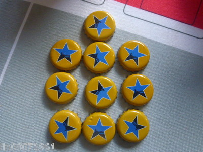 10 NEWCASTLE BROWN CROWN BOTTLE TOPS. USED.