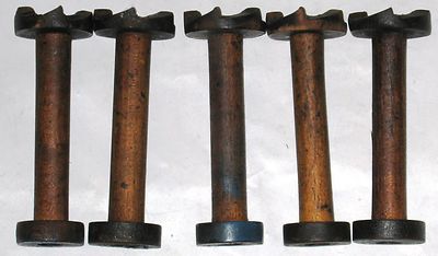 5 VINTAGE WOOD SPINDLES/SPOOLS/BOBBINS