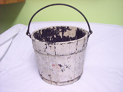 Title (ebay affiliate link): ANTIQUE WOOD BUCKET PAIL w/ METAIL HANDLE / PRIMITIVE / COUNTRY GARDEN