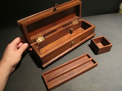 Title (ebay affiliate link): 18th 19th C Antique Style Wood Inkwell Writing Box & Turned Pen Desk Set