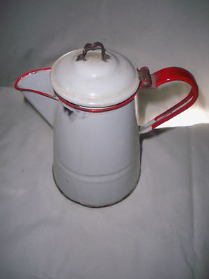 VINTAGE-- RED TRIM -- WHITE TEA POT