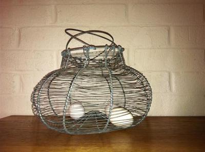 Title (ebay affiliate link): Vintage Primitive Wire Egg Gathering Basket With Patina~ Collapsible~Nice