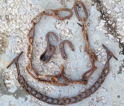 Antique primitve horse gear Hand forged chains hooks collar harness hames rustic