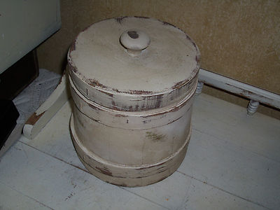 Title (ebay affiliate link): ANTIQUE PRIMITIVE BUTTERMILK/WHITEWASH WOOD FIRKIN/BUTTERMILK SUGAR BUCKET AAFA