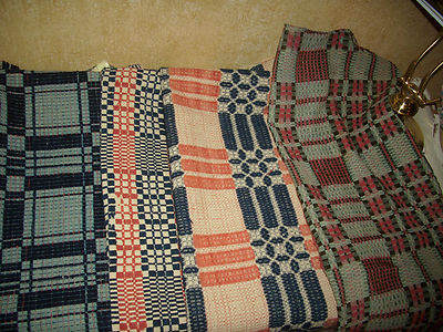 ANTIQUE HOMESPUN WOOL COVERLET STACK (2) AAFA