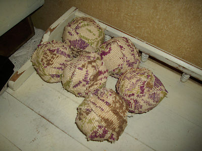 ANTIQUE HOMESPUN WOOL COVERLET RAG BALLS AAFA