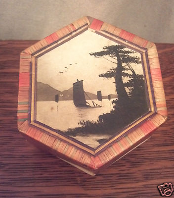 Title (ebay affiliate link): Vintage Vantines Raffia Candy Box w Original Painting on Front -- Old Paper Logo
