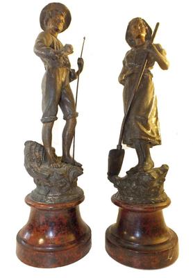 Title (ebay affiliate link): Set Of Two 2 Antique Figural Garnitures Mantle Clock Sculptural Side Ornaments