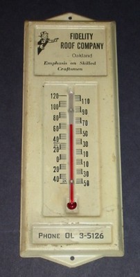 old FIDELITY ROOF CO Oakland Ca Roofing Tin Advertising Thermometer Display Sign