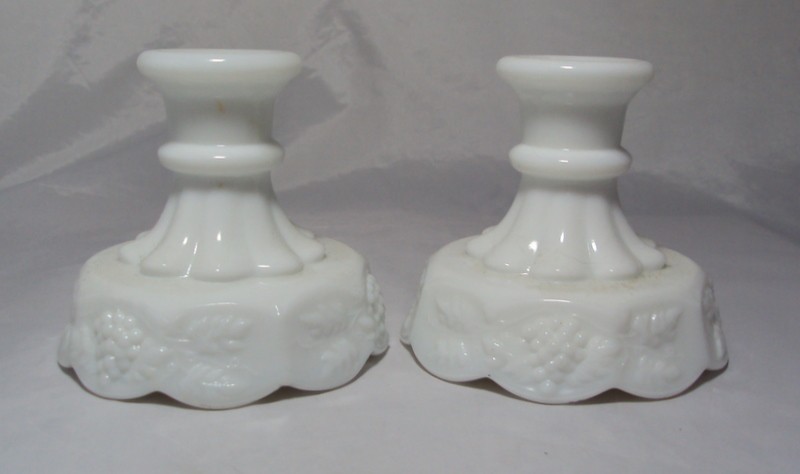 Westmoreland Paneled Grape Milk Glass Candle Holders~x2