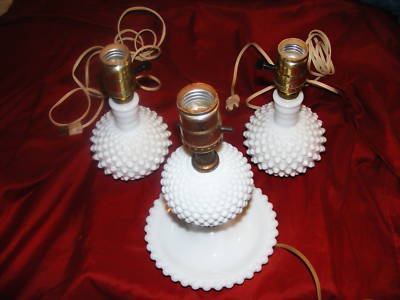 Vintage Set of 3 Hobnail Milk Glass Dresser Lamps