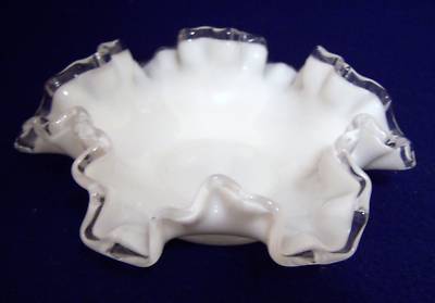 VINTAGE FENTON MILK GLASS SILVER CREST CANDY DISH