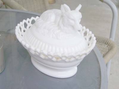 Antique 1889 Milk Glass Covered Fox On Nest-Like A Hen