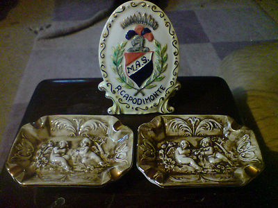 CAPODIMONTE CHERUB ASHTRAY PAIR AND RARE SALES PLAQUE