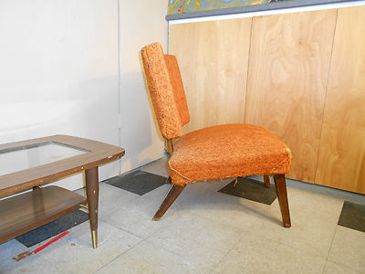 Title (ebay affiliate link): 1950's Orange Fabric Armless Slipper Lounge Chair Retro Mid-Century Modern